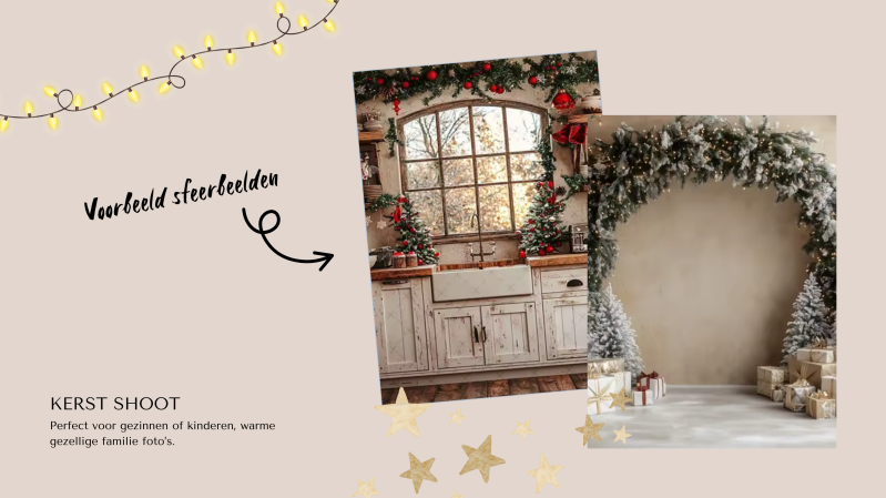 Maak van dit jaar een onvergetelijke herinnering met een gezellige kerstshoot in mijn studio in Rhenen. Met sfeervolle styling, winterse details en een vleugje magie creëer ik feestelijke foto’s die ideaal zijn voor kerstkaarten of om cadeau te doen aan je dierbaren.